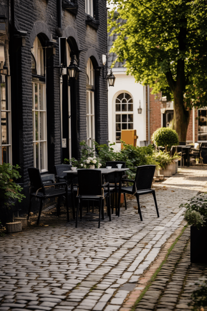 Tranquil Afternoon at The Hague, a typical style brick patio Cafe.
